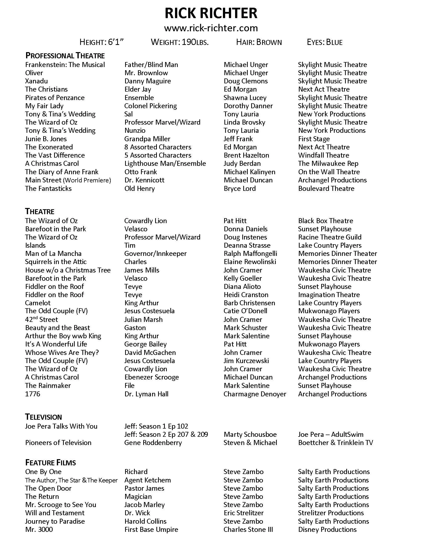 Rick Richter is a Milwaukee based actor. A veteran of the theatre for over a decade, Rick has been in over thirty productions. He also has a great deal of experience in print, commercial, and voice-over work.